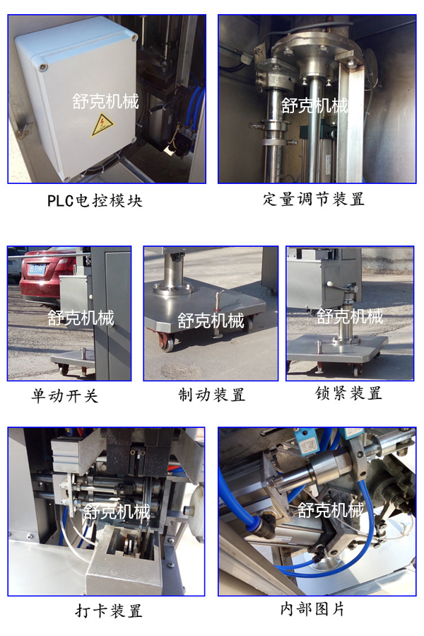 灌腸機打卡機采用先進技術,運用氣動,光電控制原理,配有微電腦控制設計制造的一種新型設備,可連續自動定量灌裝、打卡,操作簡單,維修方便,重復性好,定量準確,封口嚴緊,灌裝飽滿程度可調,扣形美觀,質量可靠,結構合理,性能可靠,操作簡單,維護方便,是肉類加工的理想設備。采用優質不銹鋼材料制成,表面經過特殊工藝處理,外形美觀,結構緊湊合理,密封防水,易于清洗。